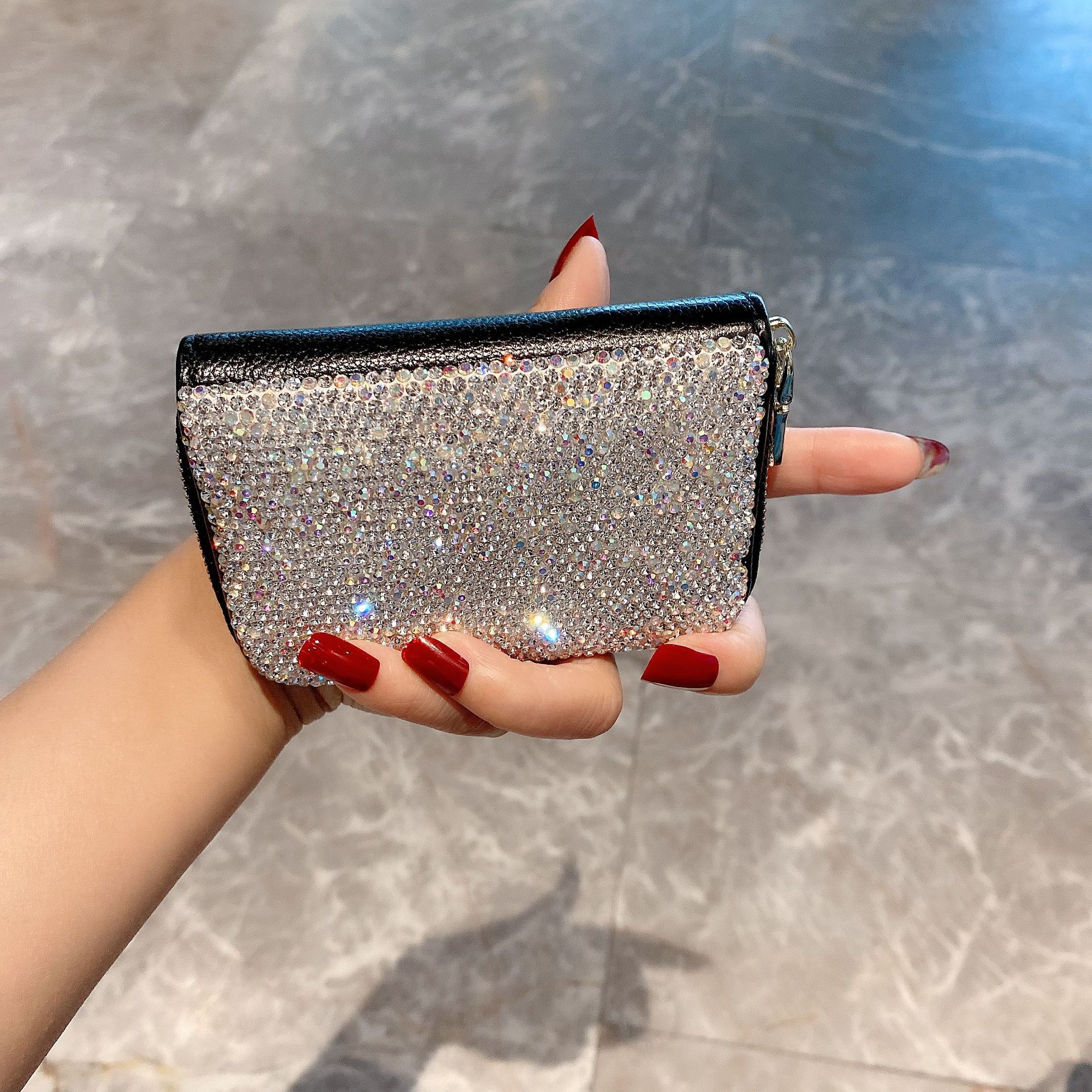 | nameOriginal | Genuine Leather Zipper Small Wallet Women's Short Card Bag with Diamonds Ultra-thin Exquisite High-end High-capacity Multi-card Small Trendy |