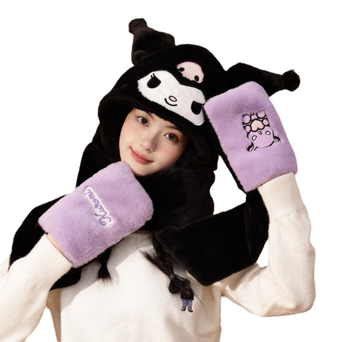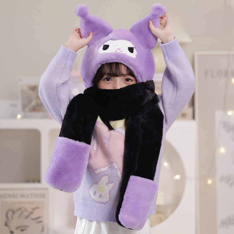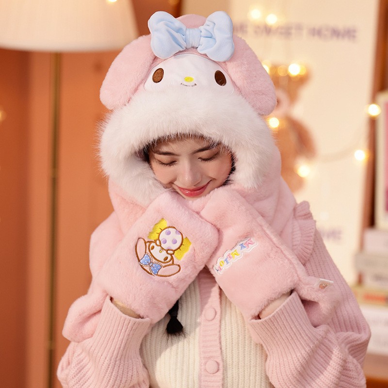 | nameOriginal | Genuine Sanrio ear hat women's one-piece hat gloves scarf hat three-piece winter riding outdoor warm scarf |