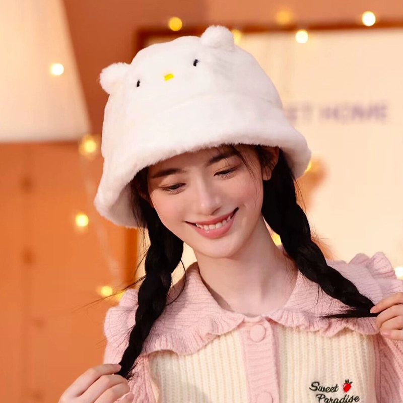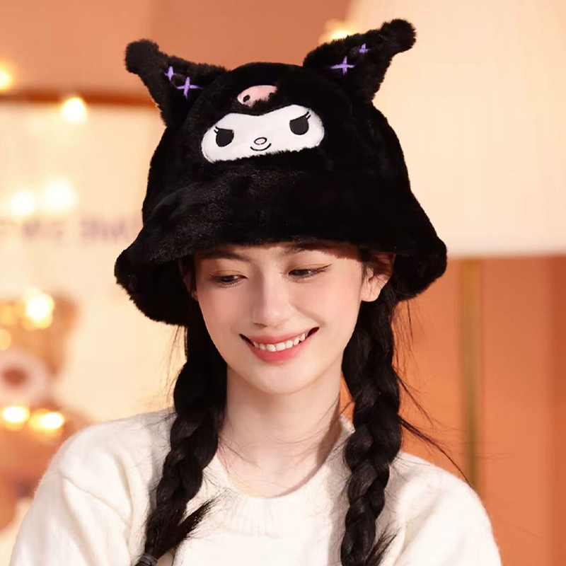 Genuine Sanrio Kurome plush fisherman hat for women in autumn and winter students cute cartoon plus velvet warm basin hat