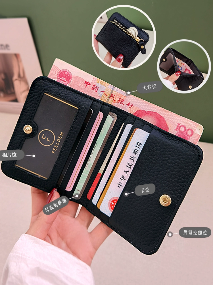 | nameOriginal | Genuine small wallet for women new 2024 short cowhide student Korean version cute and fashionable small folding coin purse |