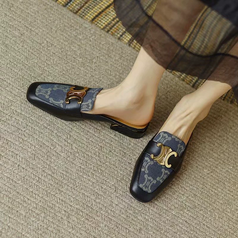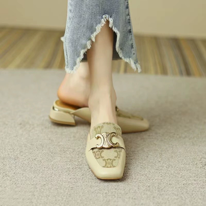 Genuine soft leather retro Arc de Triomphe flat middle-aged mules