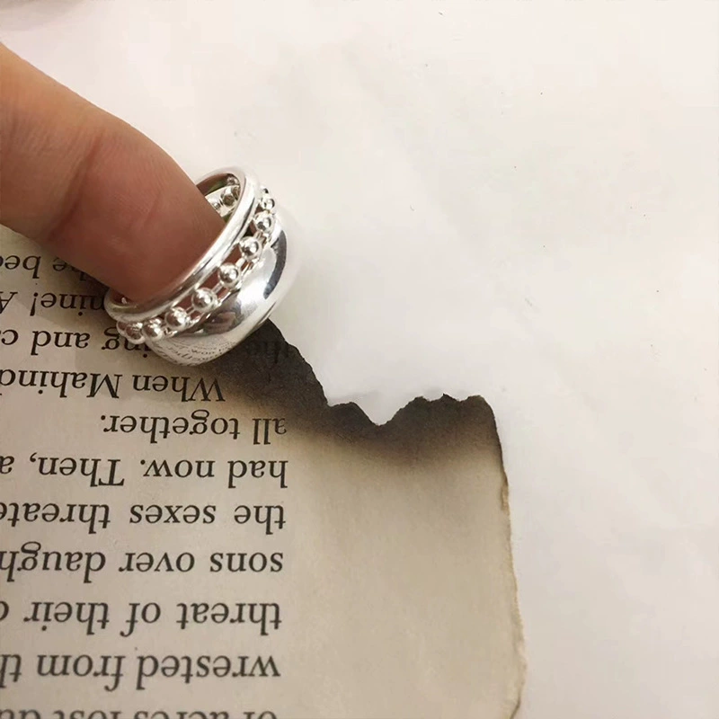 | nameOriginal | Geometric wave ring women's fashion personality round beads S925 silver open ring niche hip-hop index finger ring trend |
