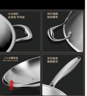 | nameOriginal | German 316 Stainless Steel Wok Uncoated Non-stick Pan Household Wok Round Bottom Gas Induction Cooker Pot |