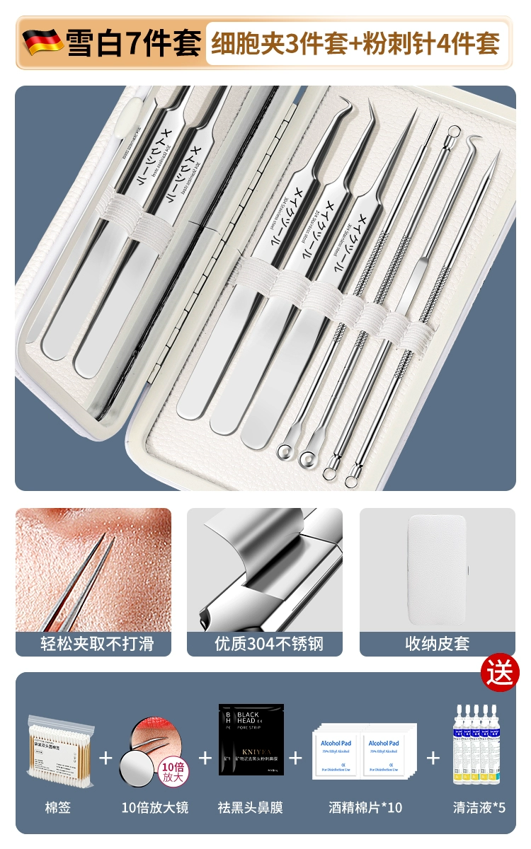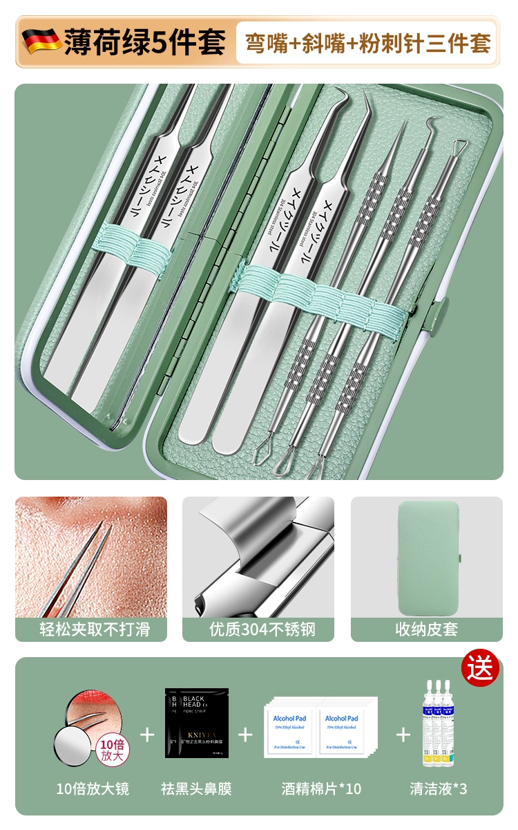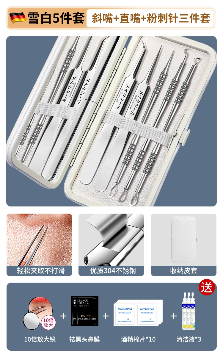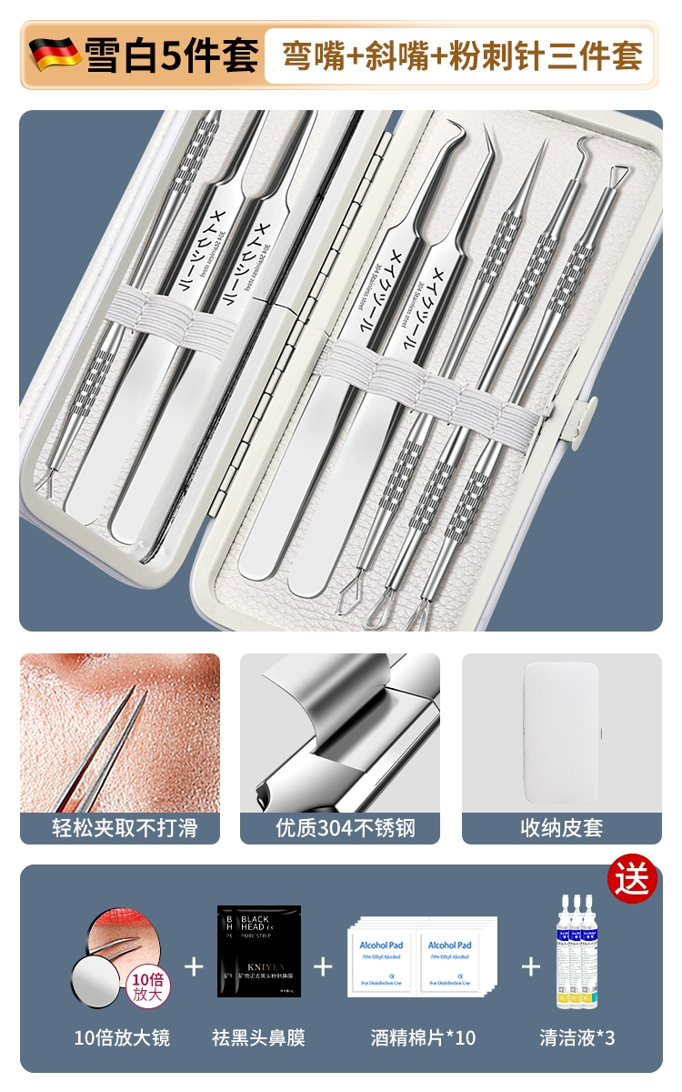 | nameOriginal | German acne needle set, acne squeezing tool, scraping needle, cell clip, ultra-fine blackhead tweezers, special for beauty salons |