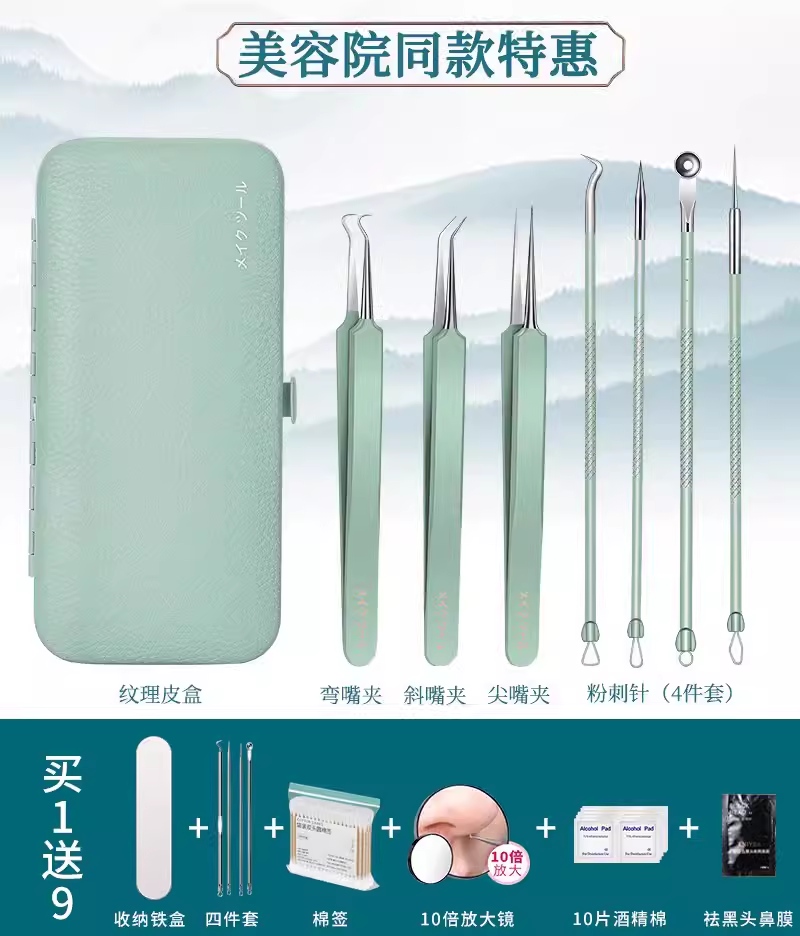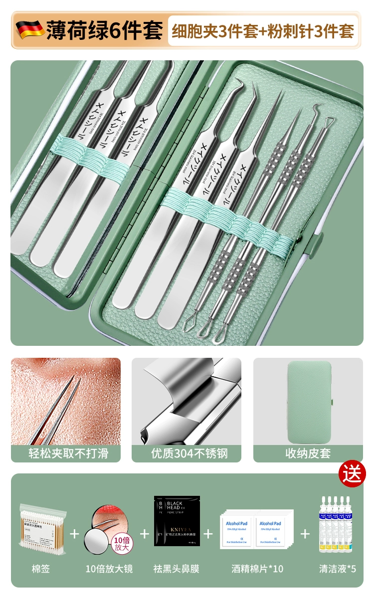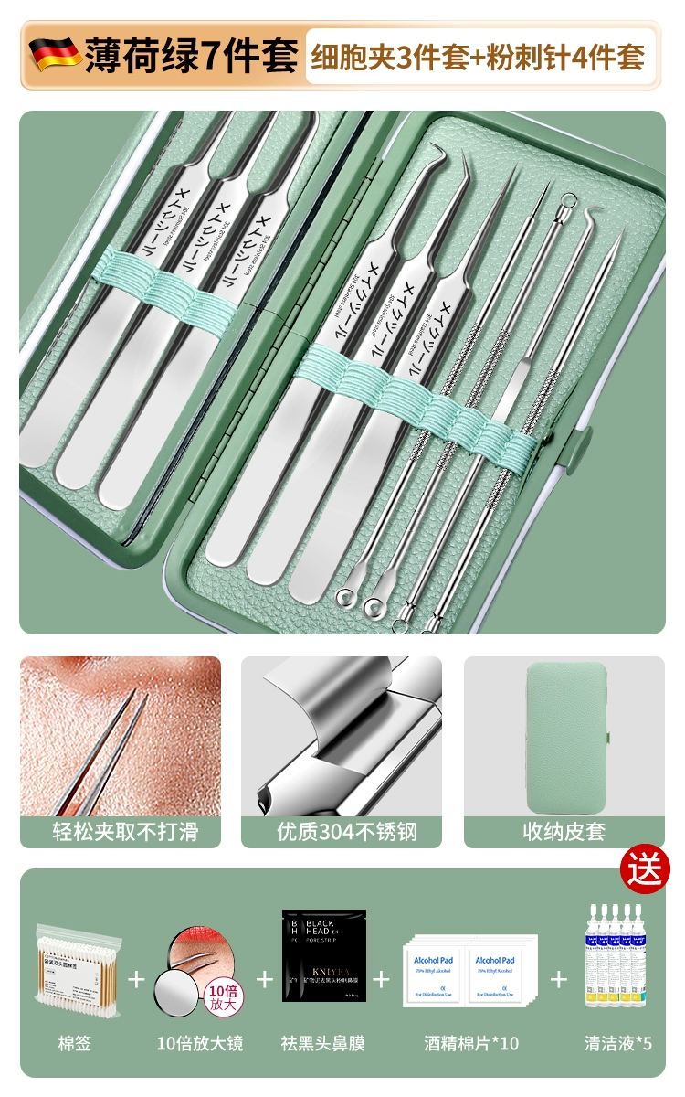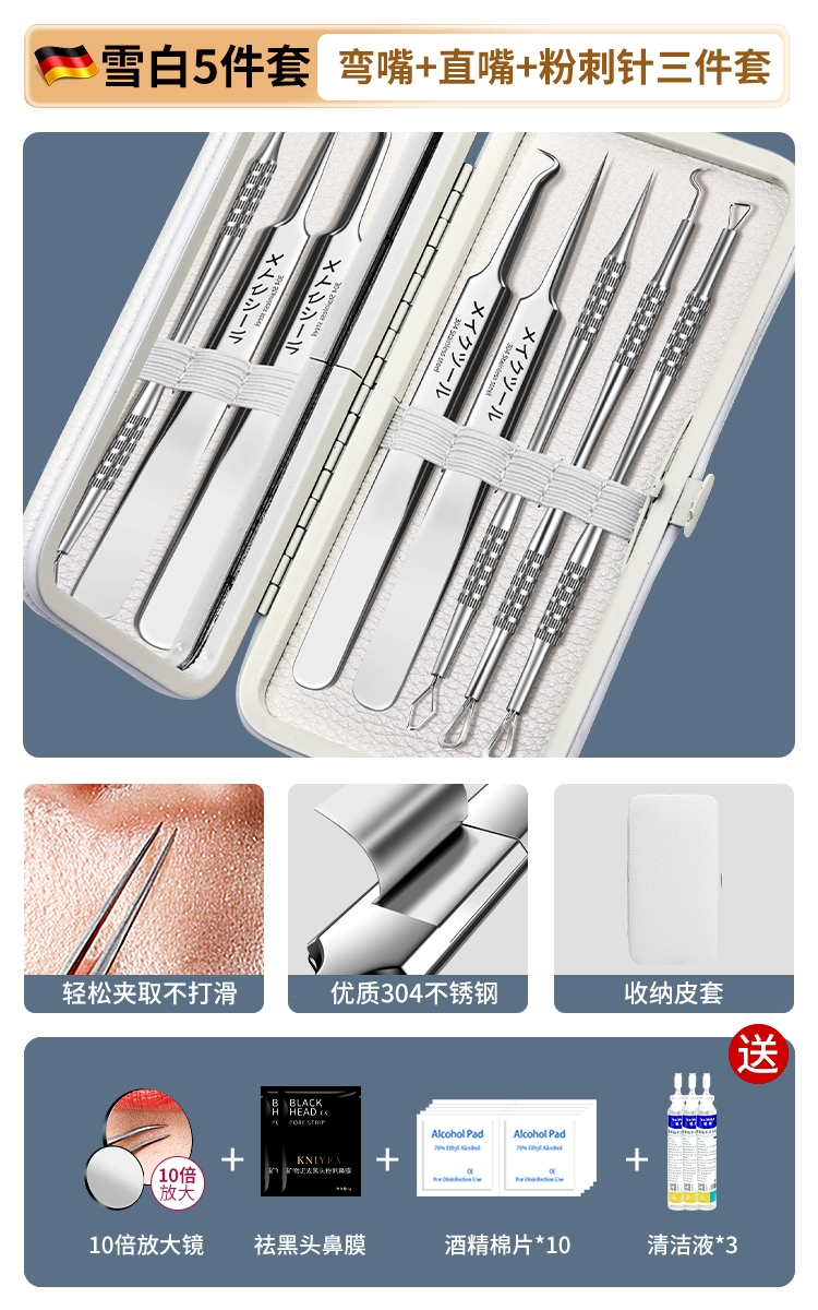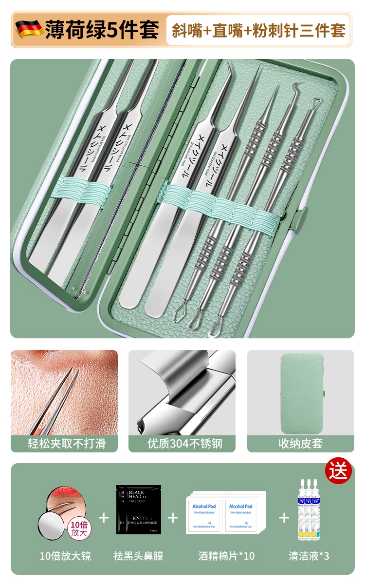 | nameOriginal | German acne needle set, acne squeezing tool, scraping needle, cell clip, ultra-fine blackhead tweezers, special for beauty salons |