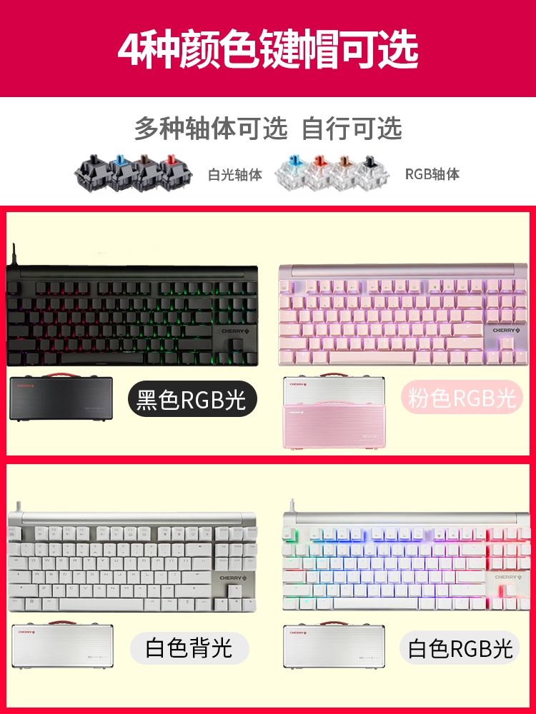 | nameOriginal | German Cherry MX8.0 pink CHERRY mechanical keyboard 87 keys red axis tea axis RGB backlight computer special game cheery e-sports black axis chreey side engraved pomelo silver green axis chrrey |