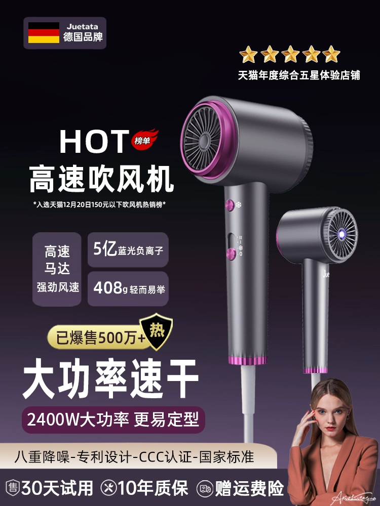 | nameOriginal | German Juetata high-speed hair dryer household negative ion hair care dormitory students high wind quick-drying hair dryer |