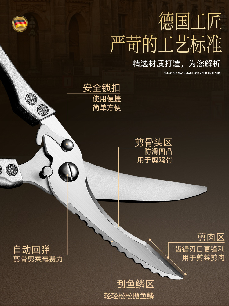German kitchen scissors multifunctional household scissors chicken duck goose bone imported scissors chicken bone stainless steel