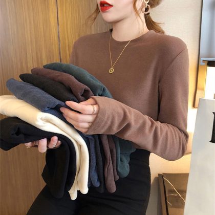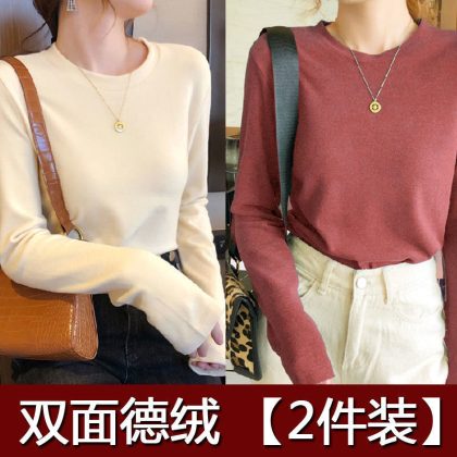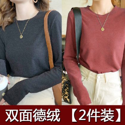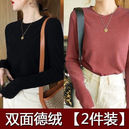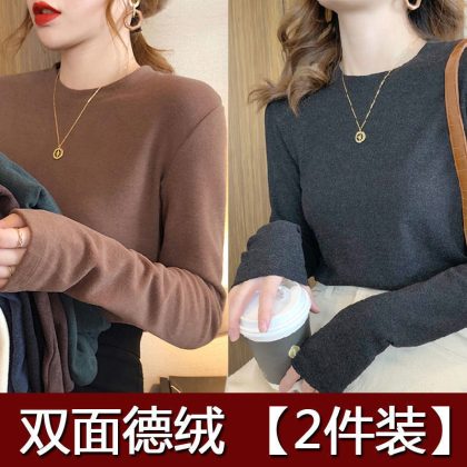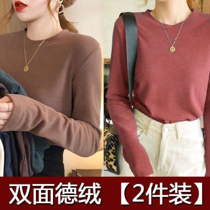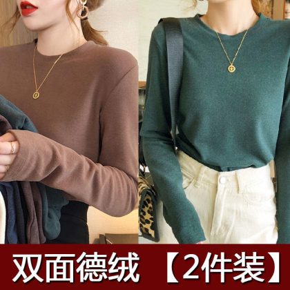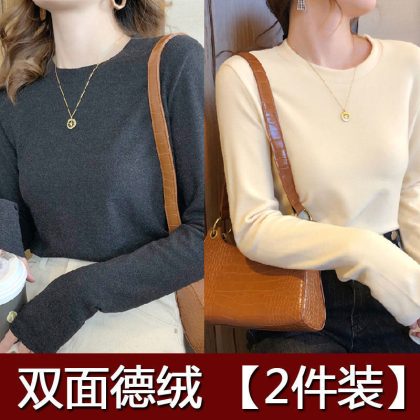 German velvet bottoming shirt women’s double-sided two-piece round neck autumn slim sanding long sleeve shirt factory outlet