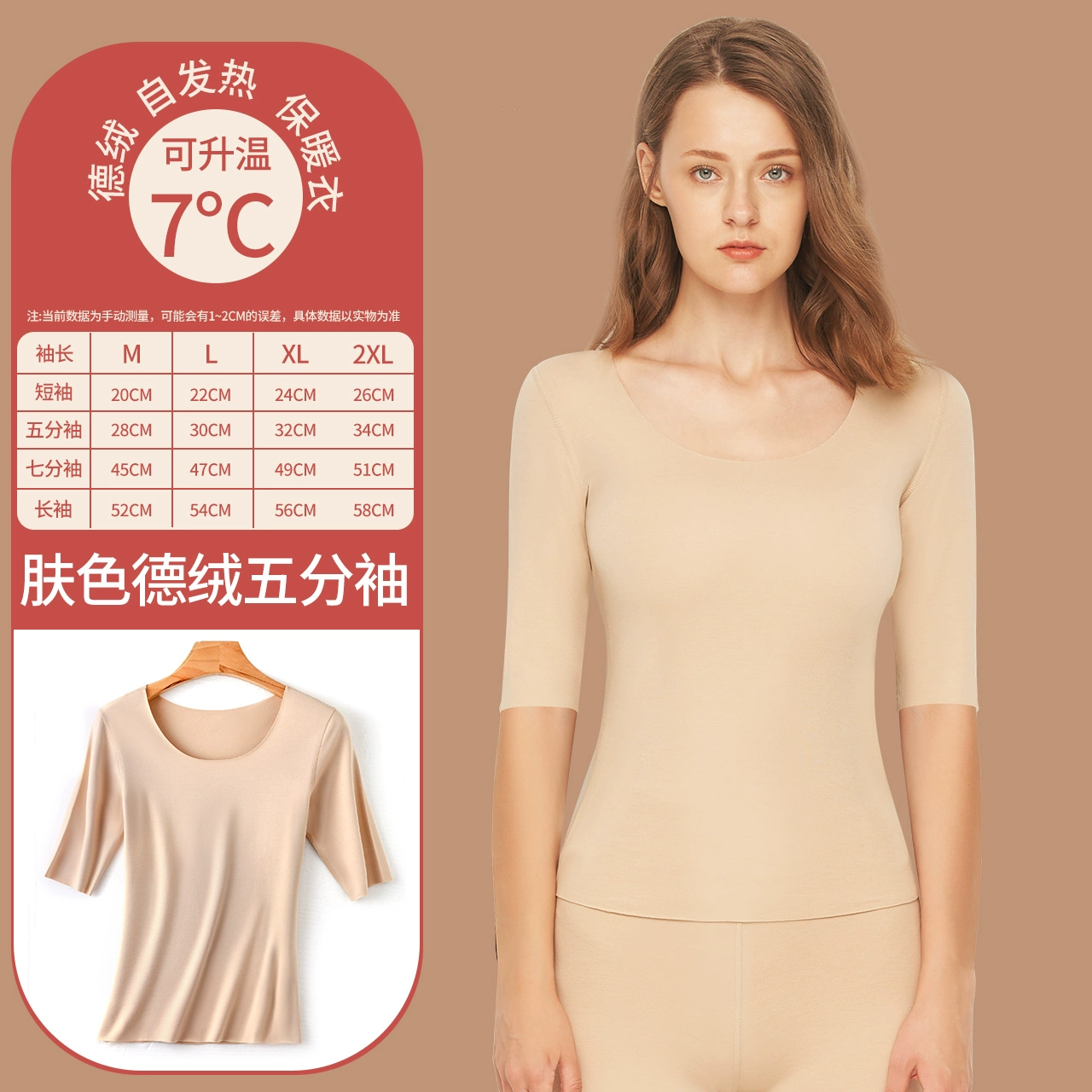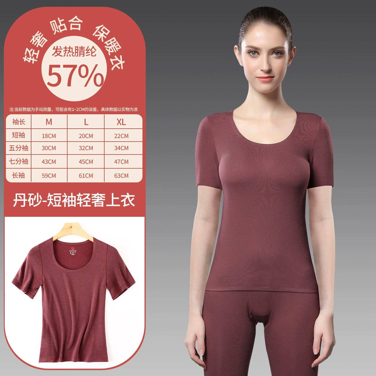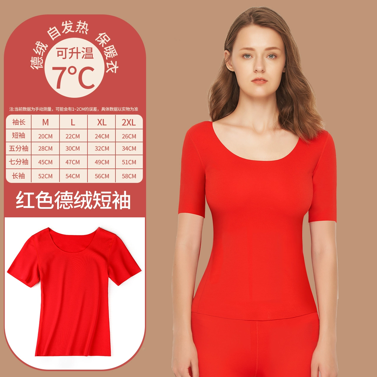 | nameOriginal | German velvet bottoming shirt women's five-quarter sleeve thermal underwear short-sleeved three-quarter and half-sleeve skin color red Xiuhe suit inner wear wedding |