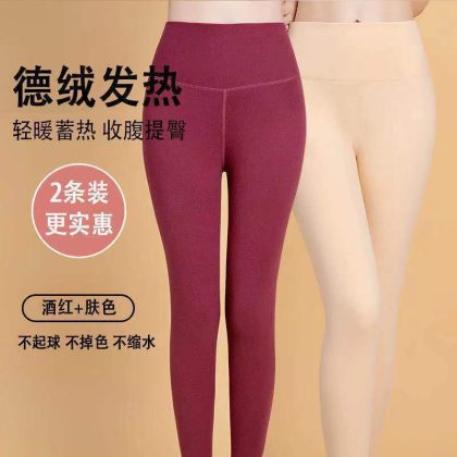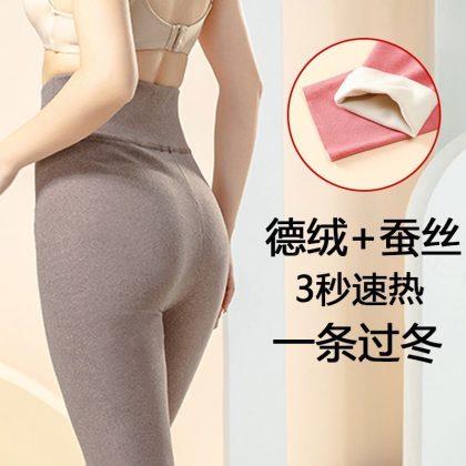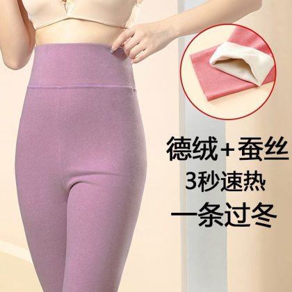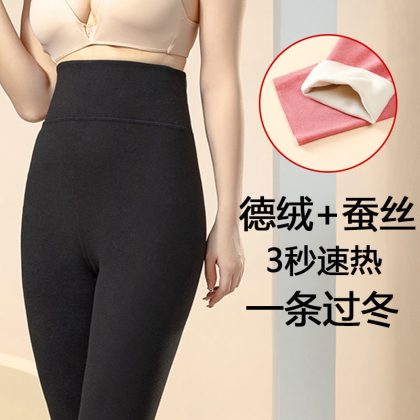 German velvet double-layer high-waist long johns women’s warm pants seamless lock temperature self-heating inner wear fleece-lined thick leggings women