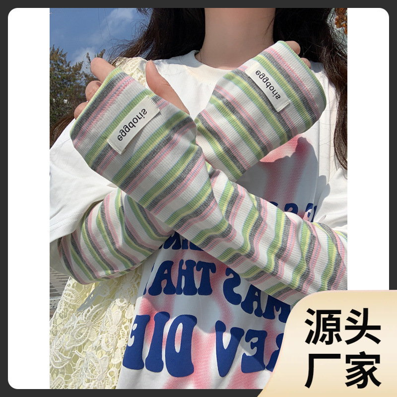 Gh Dopamine Color Striped Ice Sleeve Women's 2024 Summer New Loose Anti-UV Ice Silk Sunscreen Breathable Sleeve