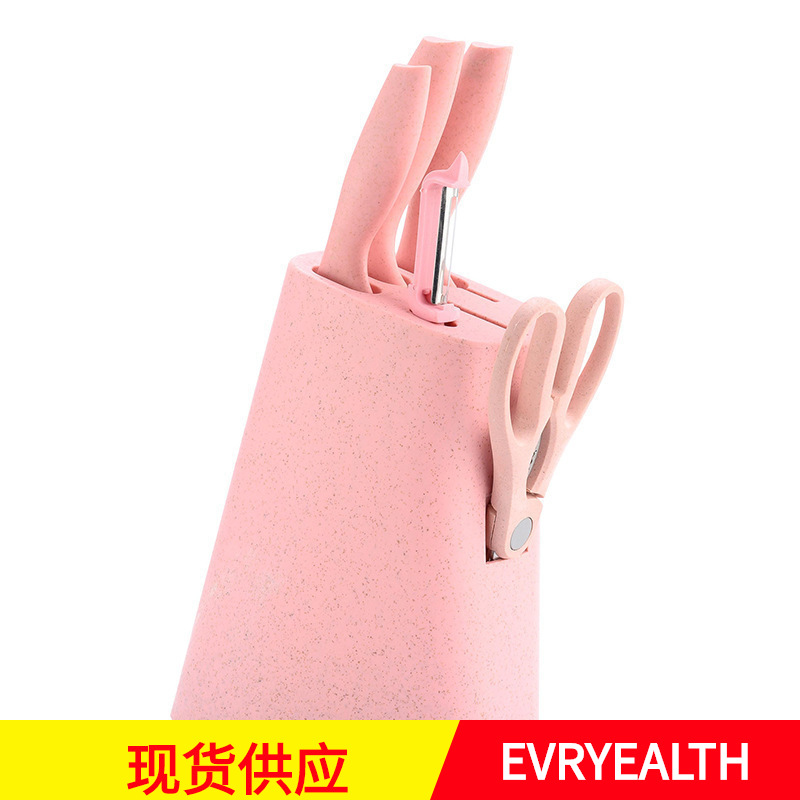 Gift knife set small wheat straw macaron baby food supplement knife kitchen knife 6-piece stainless steel knife set suit