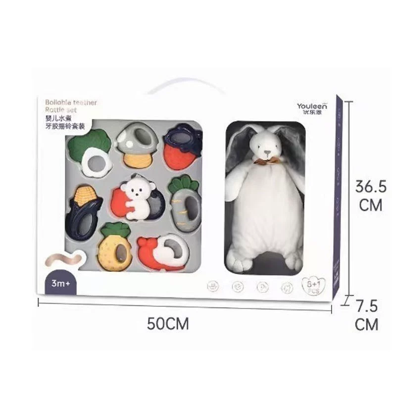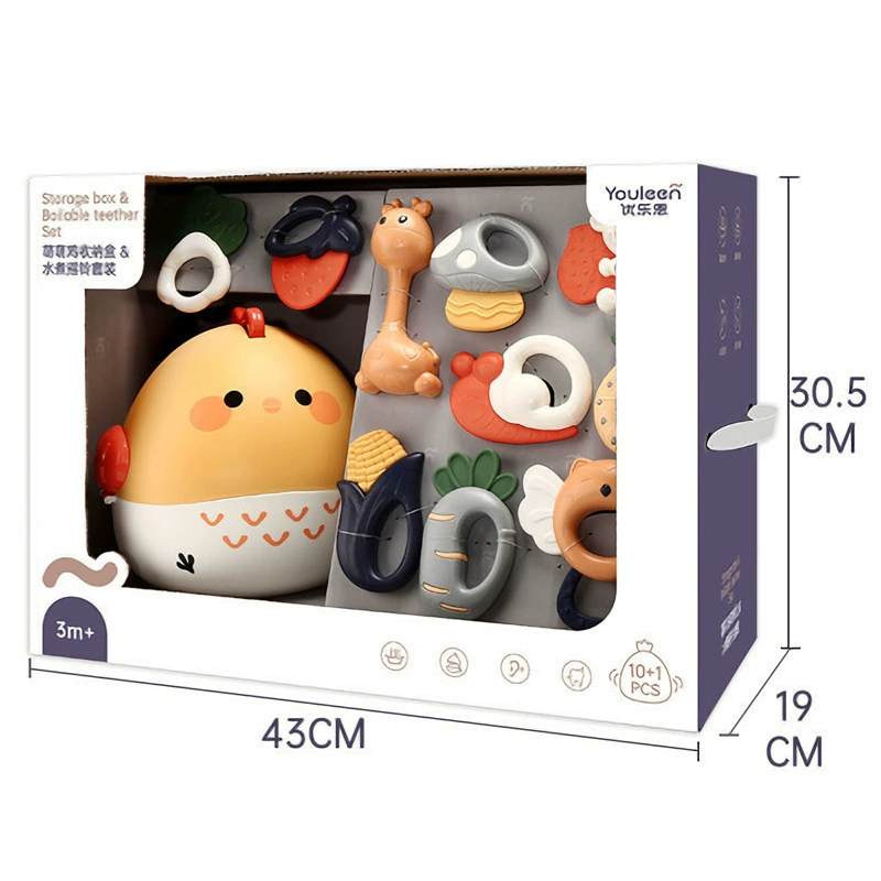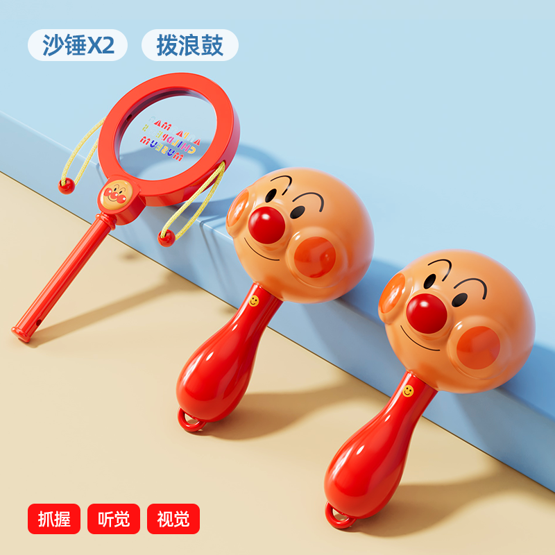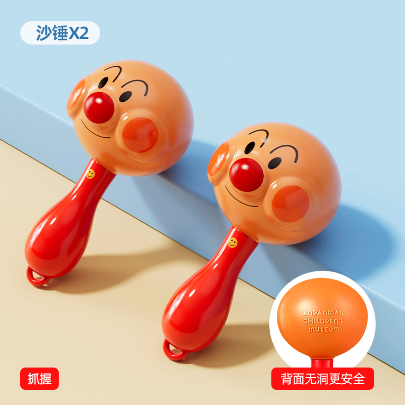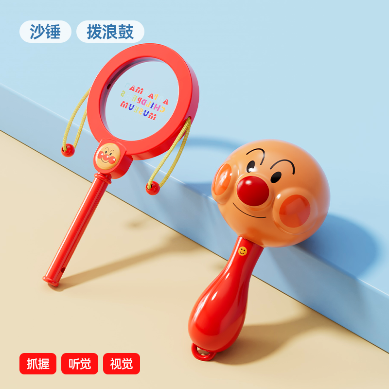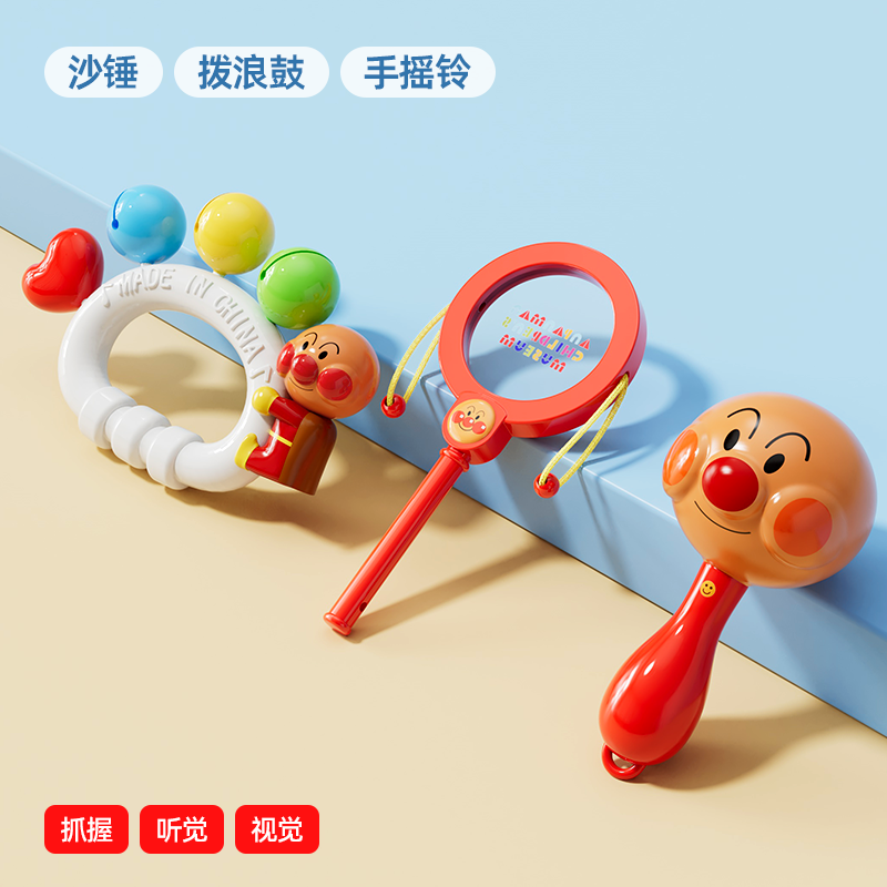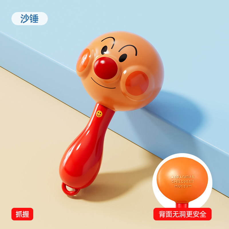 Gift looks up practicing rattle chewing hand bell