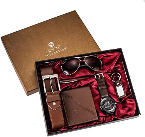 Looking for the perfect birthday gift for the special man in your life? Look no further than our 6-piece gift set! This set includes everything he needs to look stylish and put-together, including a sleek pair of glasses, a high-quality leather belt, a classic leather wallet, a stylish key chain, a large dial quartz watch, and a sophisticated pen. Each piece is carefully crafted with attention to detail and designed to last for years to come. Whether he’s dressing up for a special occasion or just running errands around town, this gift set has everything he needs to look and feel his best. So why wait? Treat him to the ultimate birthday gift with our 6-piece gift set today!