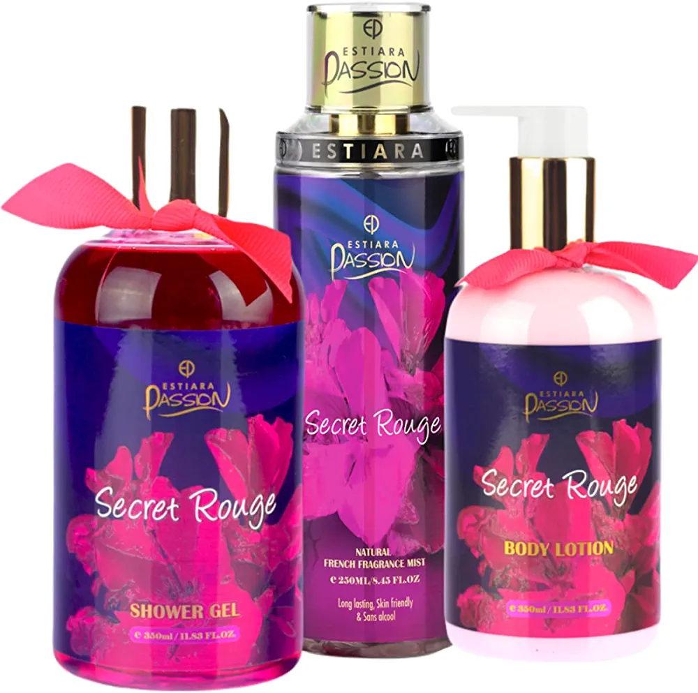 This 3 piece gift set comes in a beautiful purple packaging, making it the perfect gift for someone special or a treat for yourself. With the Estiara Passion Secret Rouge Bath & Body Beauty Skincare 3 Piece Gift Set, you can indulge in a luxurious and pampering experience every day.