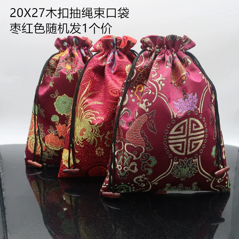 | nameOriginal | Gift storage lucky bag, cultural toy bag, Chinese style embroidered wooden buckle drawstring pocket, jewelry small cloth bag |
