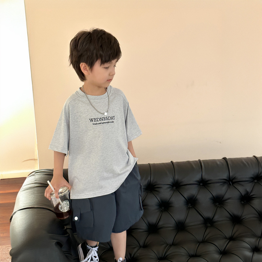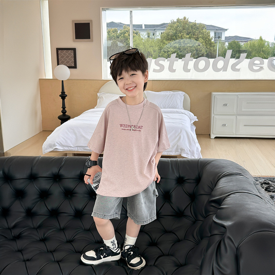 | nameOriginal | Gifts Children's Short-sleeved T-shirt Men's 2024 Summer New Colored Cotton Embroidered Letter Waistcoat Boys' Short-sleeved Weaving Children's Wear |