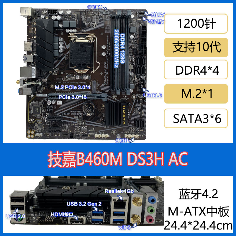 | nameOriginal | Gigabyte B460M B560 DS3H AC V2 motherboard 1200-pin desktop supports 10th generation 11th generation 10400f |