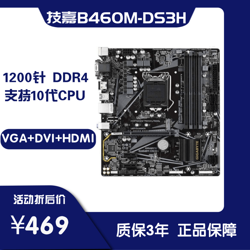 | nameOriginal | GIGABYTE B460M-D2V/POWER/DS3H motherboard 1200-pin DDR4 memory supports 10th generation CPU |