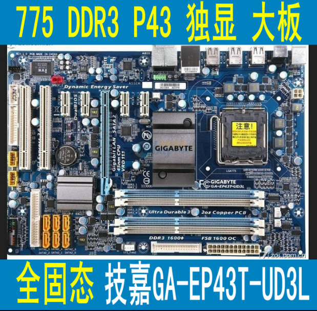 | nameOriginal | Gigabyte GA-EP43T-UD3L motherboard P43 DDR3 supports 5420, 5450 and other 771CPU 775-pin |