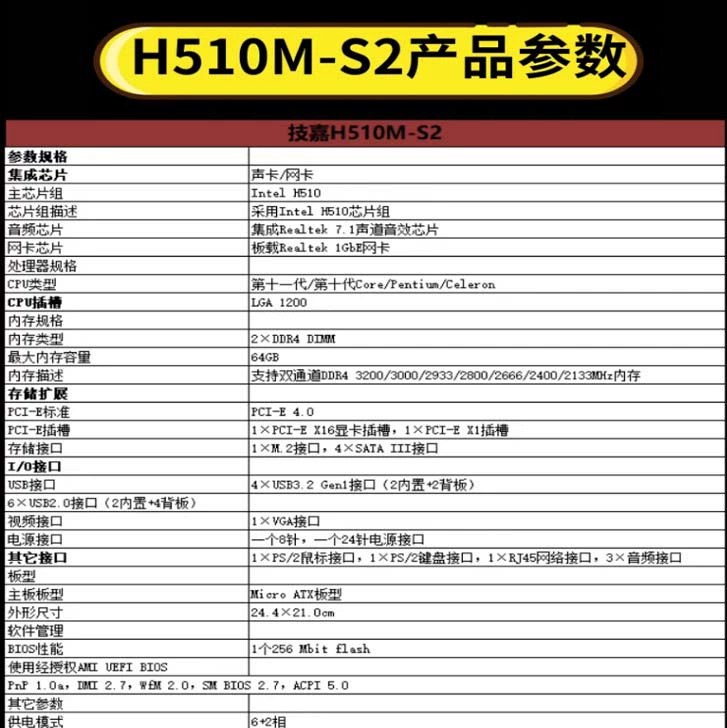 | nameOriginal | Gigabyte GA-H510M S2 /H510M DS2V computer 1200 motherboard supports 10 and 11 generations of U and M2 |