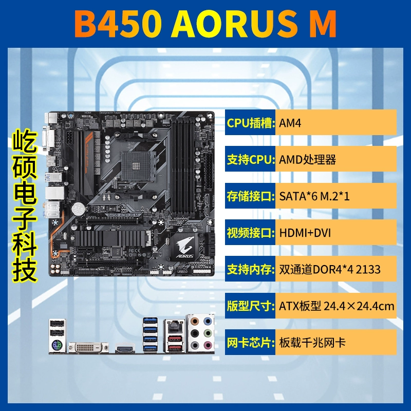 Gigabyte/Giga B450M motherboard AORUS Elite small carving AM4 platform tabletop machine DDR4 memory