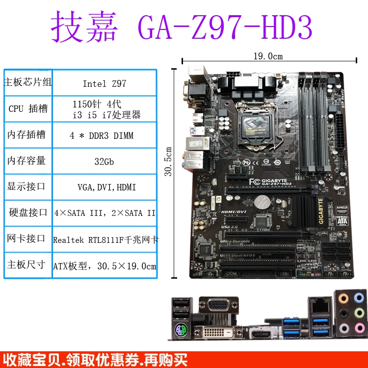 | nameOriginal | Gigabyte/GIGABYTE G1.Sniper B6 GA-Z97-HD3 Z97 motherboard 1150-pin 4790K |