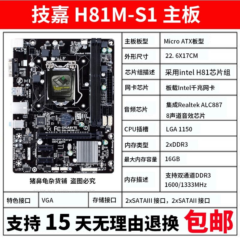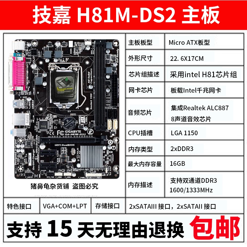Gigabyte/GIGABYTE H81M-DS2 S1 B85M-D3V D2V SI DS3H Z87 Z97 1150