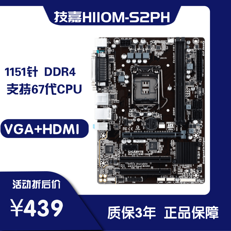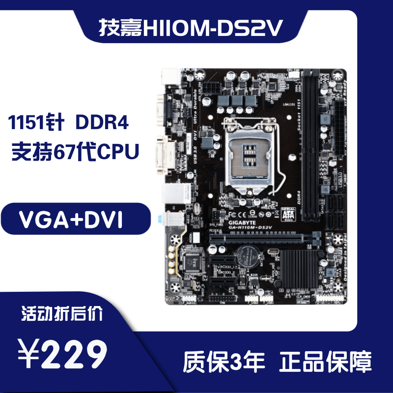 | nameOriginal | Gigabyte H110M-S2/DS2/DS2V/H/S2PH motherboard 1151-pin DDR4 memory supports 67th generation C |