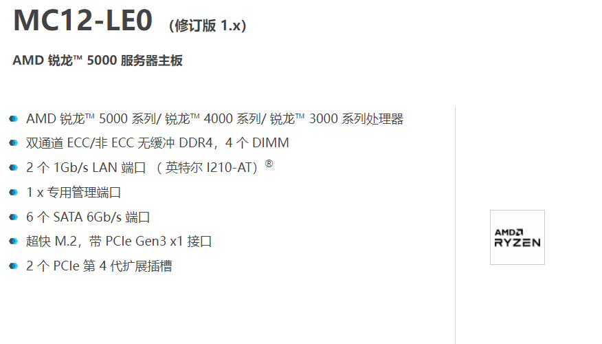 Gigabyte MC12-LE0 AMD Ryzen 3000/4000/5000 B550 server motherboard AM4 with IPMI