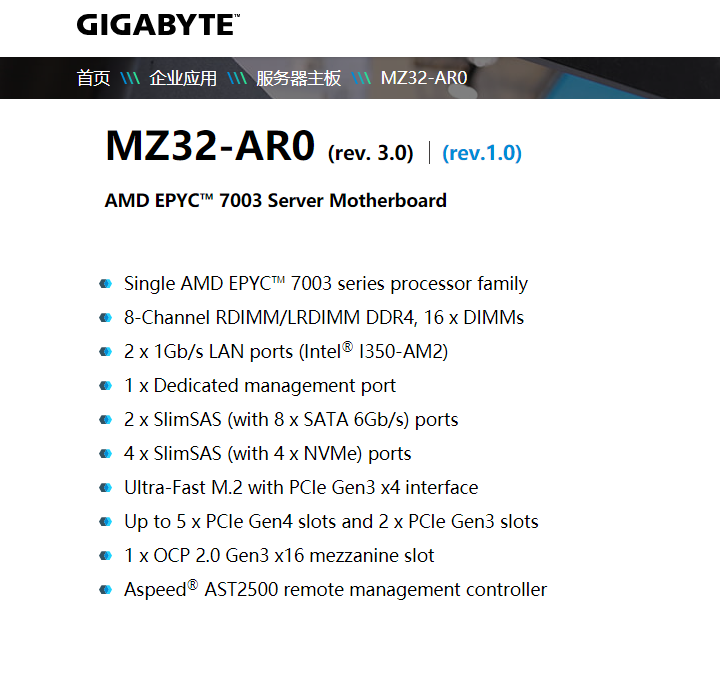 | nameOriginal | Gigabyte MZ32-AR0 AMD single-channel server CPU supports epyc 7003 CPU new |