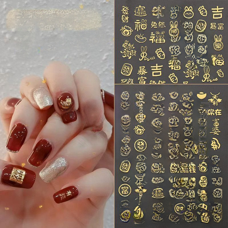 | nameOriginal | Gilding New Year nail stickers rich new year nail fu character 3d Golden New Year small jewelry stickers |