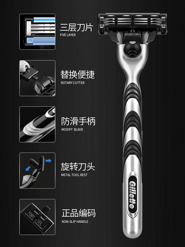 | nameOriginal | Gillette Fengsu 3-blade razor manual head Geely Fengsu 5 men's three-layer razor shaving tool holder |