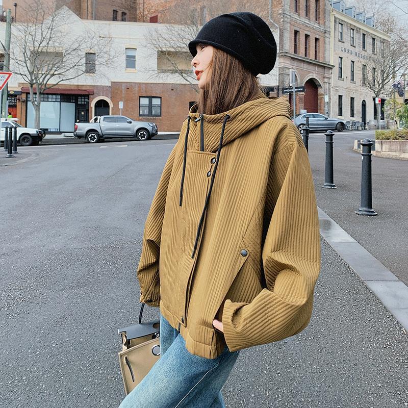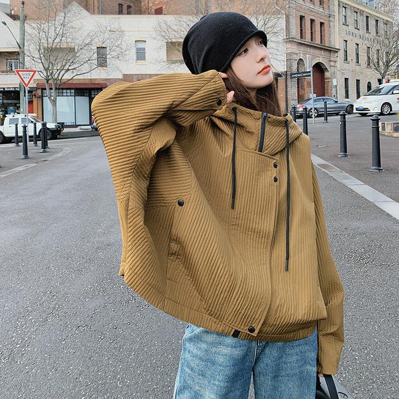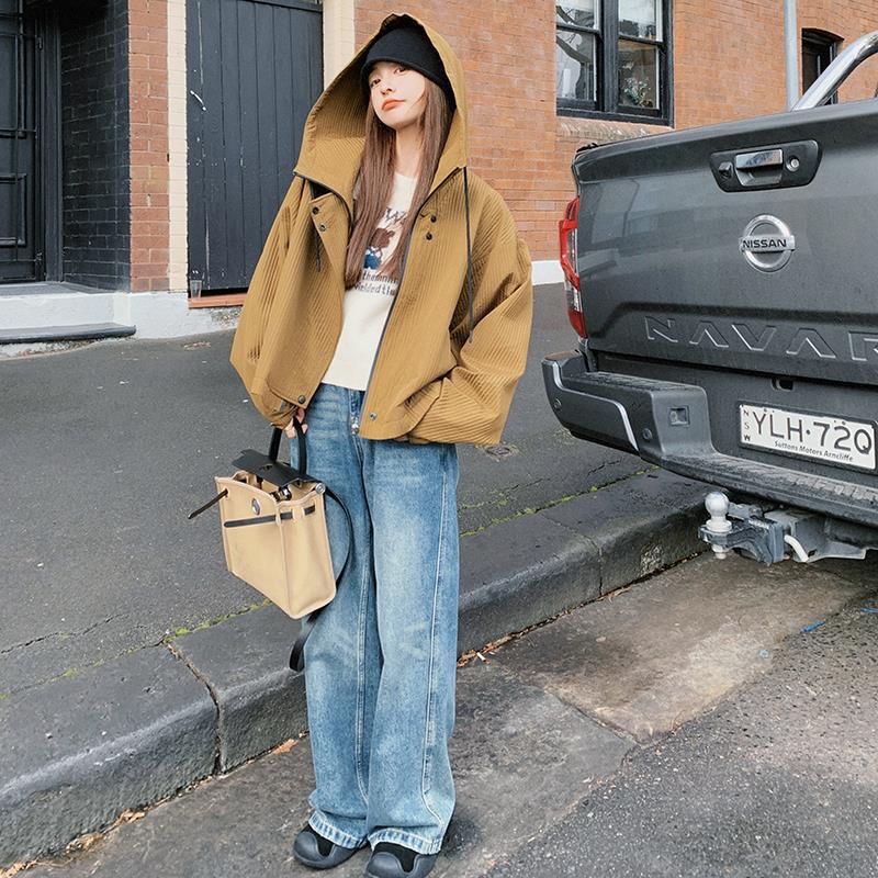 Ginger yellow short hooded coat for women 2024 Spring and Autumn New Korean style design sense niche small casual top