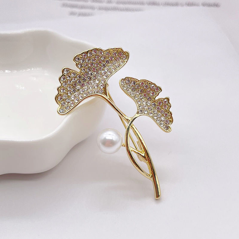 | nameOriginal | Ginkgo brooch high-end women's design sense niche pearl pin anti-exposure silk scarf buckle fixed clothes corsage decoration |