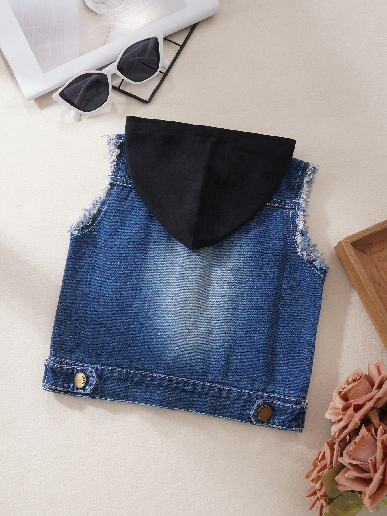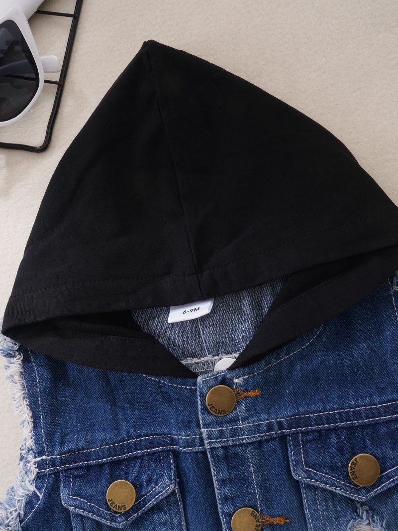 nameOriginal | Girl baby jeans hooded sleeveless cowboy coat single-breasted cardigan spring and autumn coat a generation of hair |