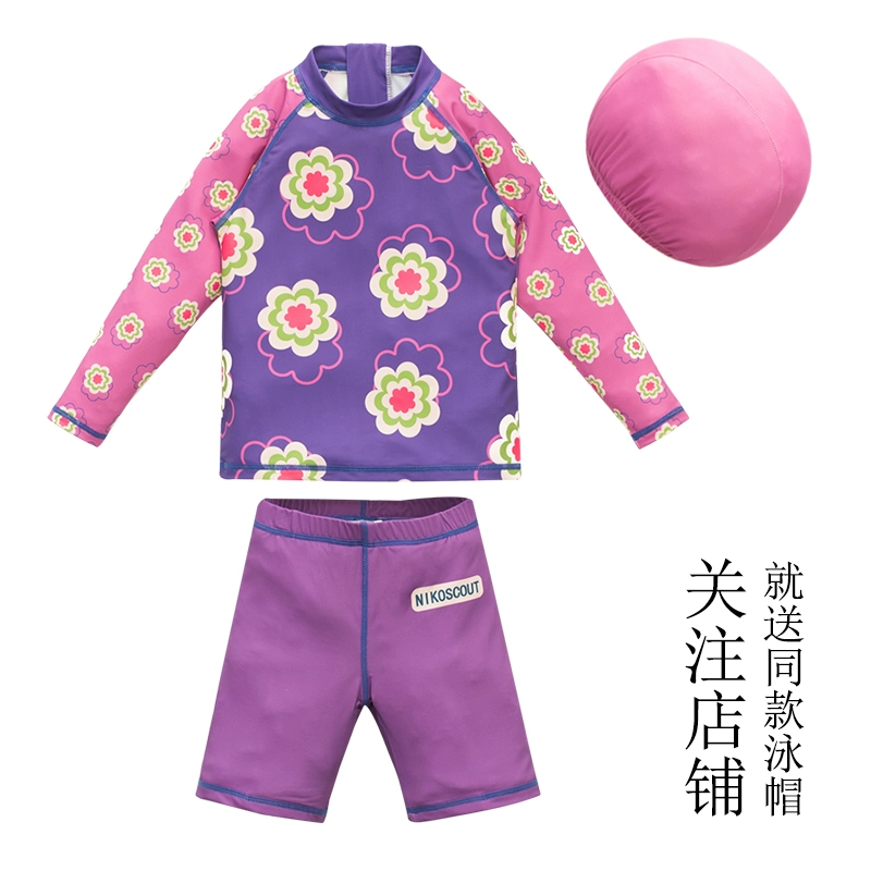 Girl Bao Xia 3-year-old category A seaside split long-sleeved swimsuit