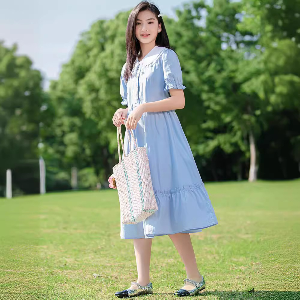 | nameOriginal | Girl Dress Doll Collar Summer High School Junior High School Students Summer Dress Long Over-the-Knee Stylish Princess Dress College Style |
