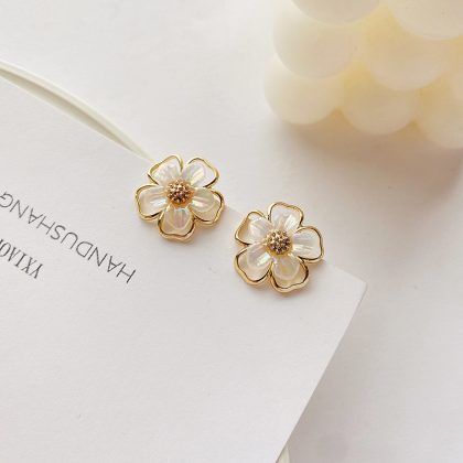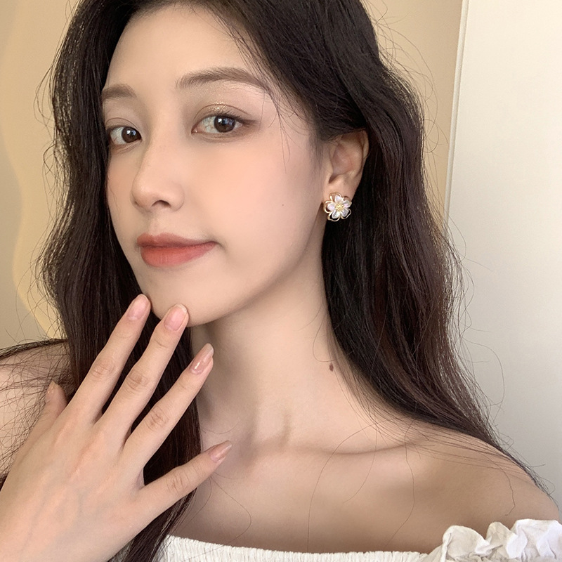 Girl Super Fairy Flower Earrings Sweet Cute Mori Earrings Temperament All-match Earrings Mosquito Incense Plate Ear Clip