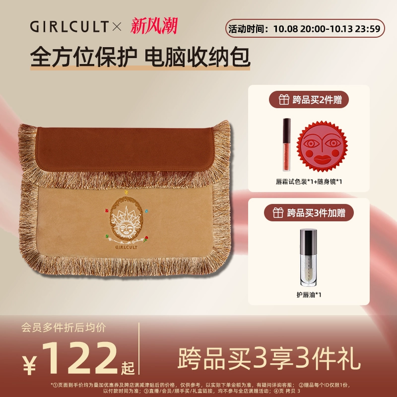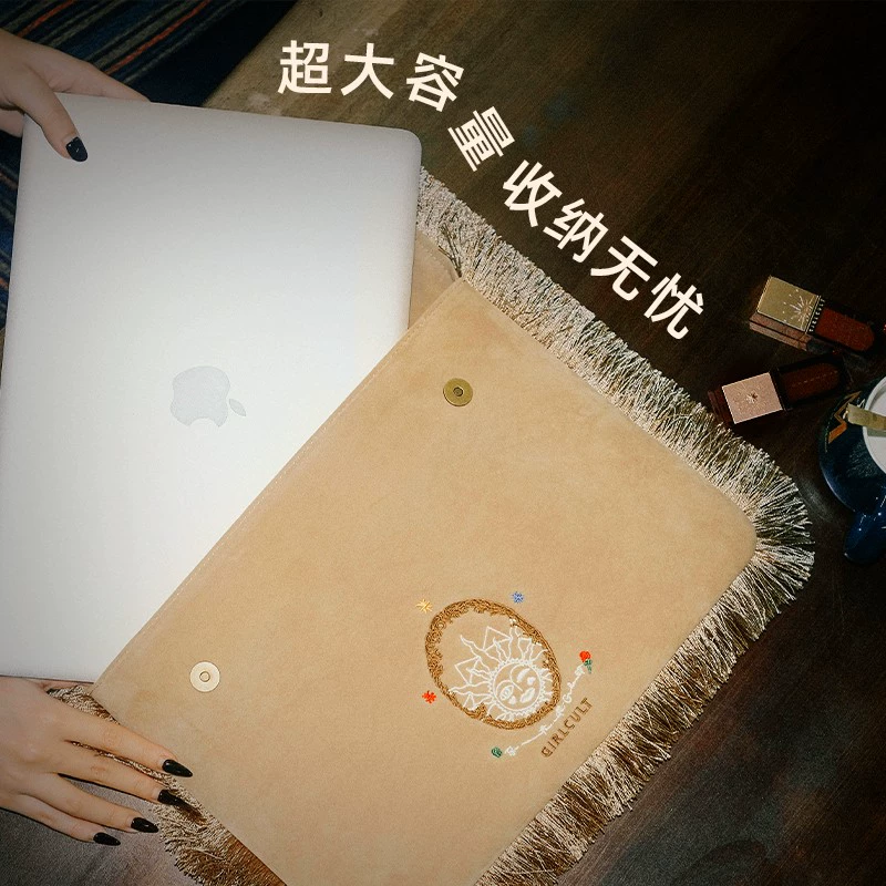 | nameOriginal | Girlcult peripheral makeup storage bag tassel embroidery computer bag suede large capacity portable portable |