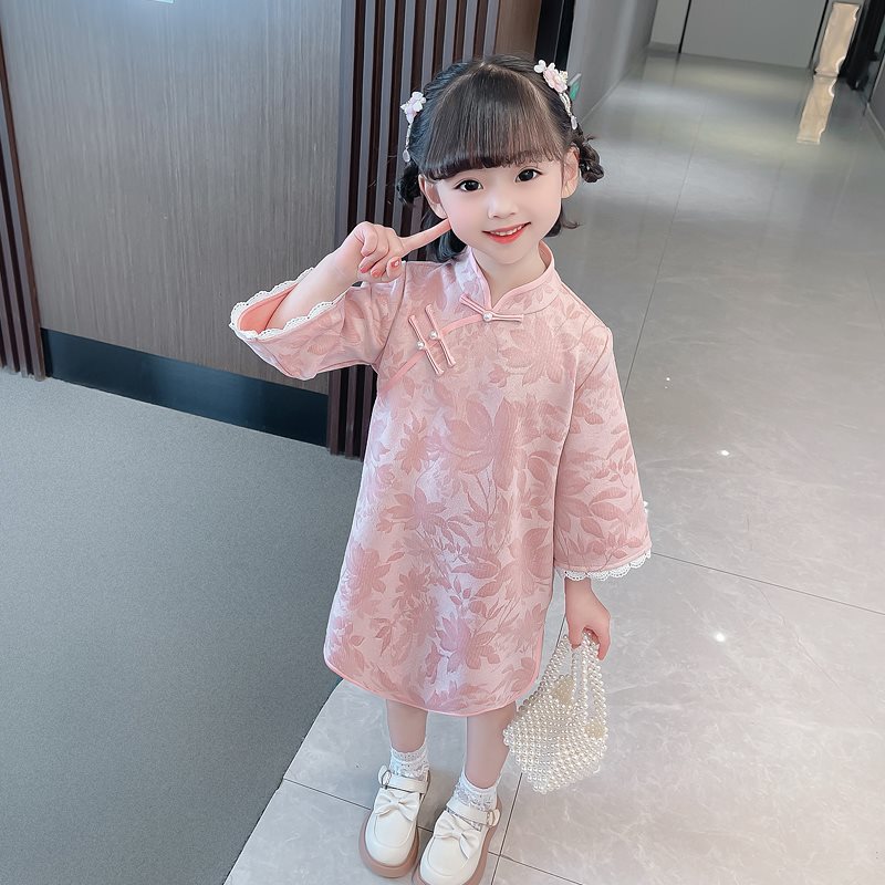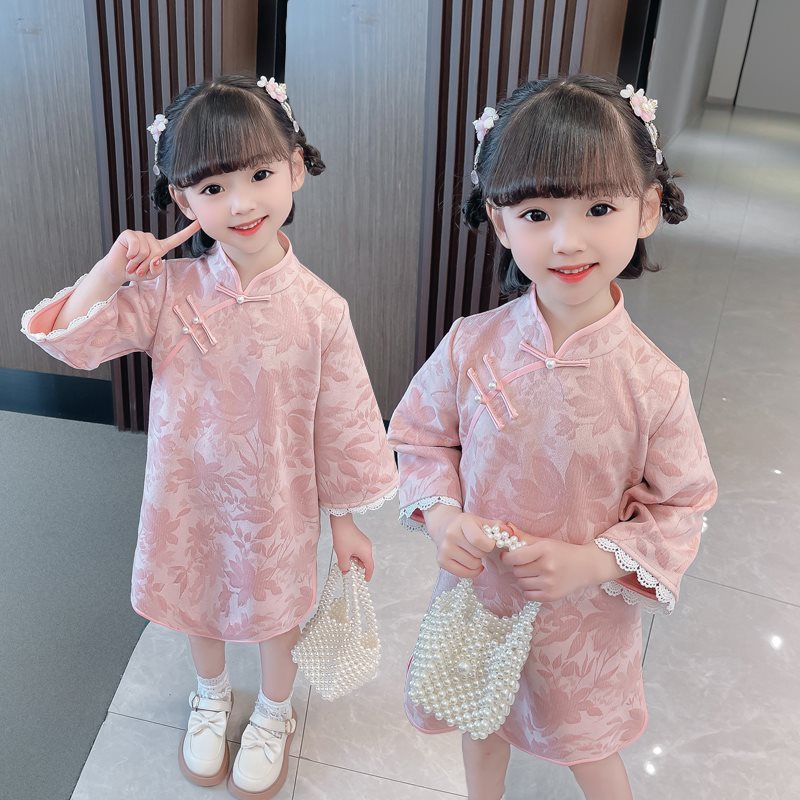Girls 2 Cheongsam Hanfu New 2024 Dress Baby Girl Chinese Antique Tang Suit 1-3-4-5 Years 6 Ethnic 7