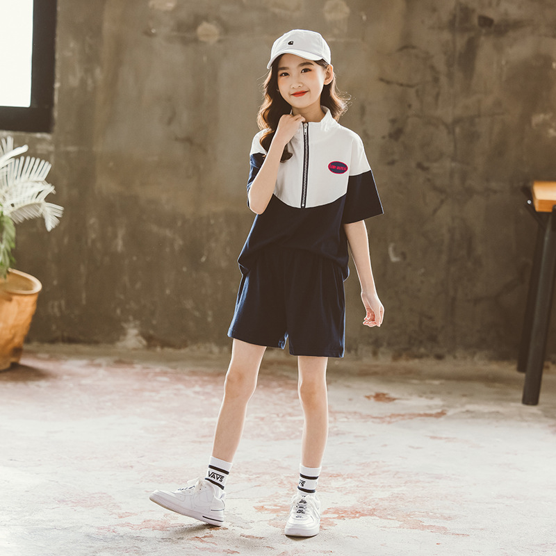 | nameOriginal | Girls' 2023 Summer Sports Suit Wide Leg Shorts + Zipper Stitching Casual Two-Piece Set One Cross-Border Hair |