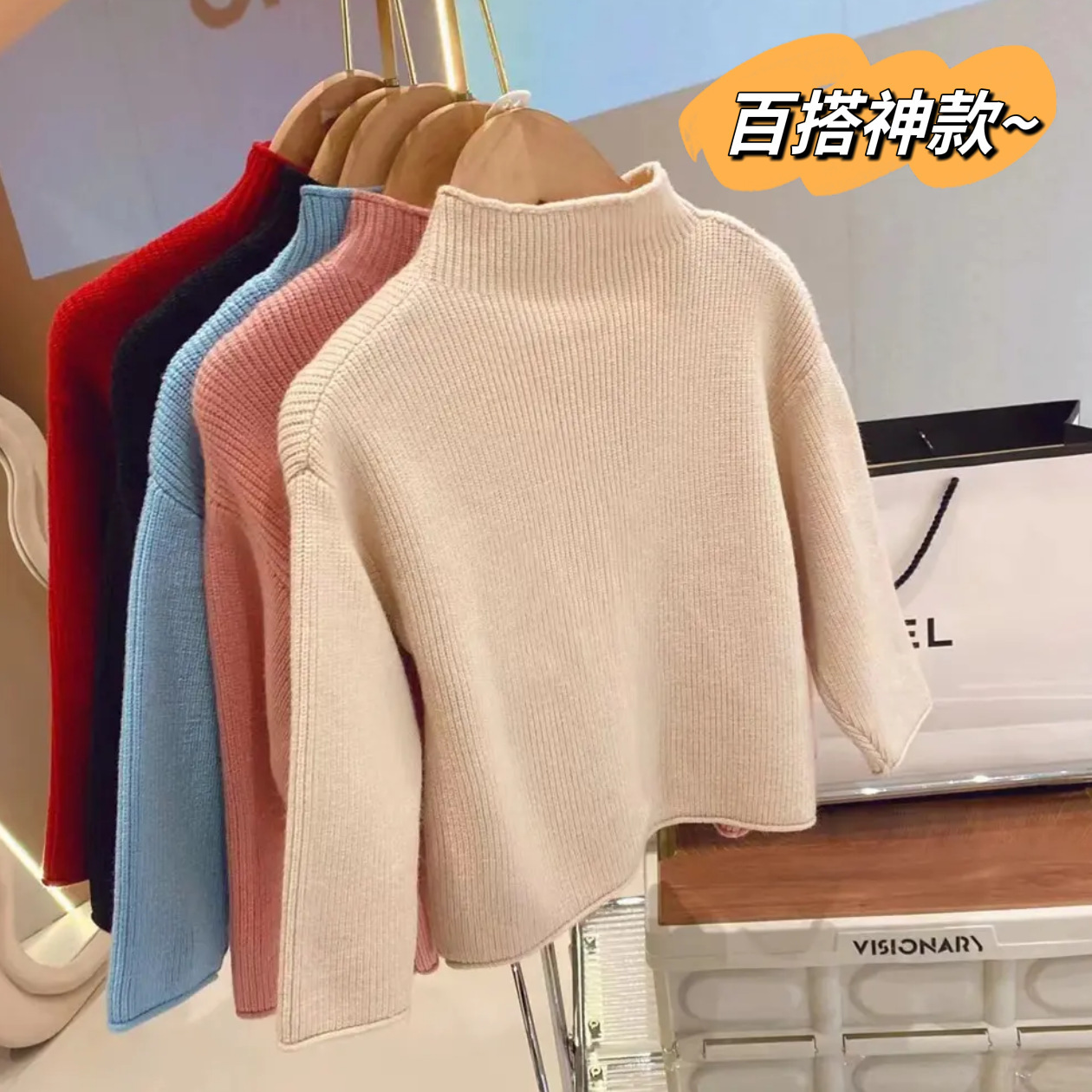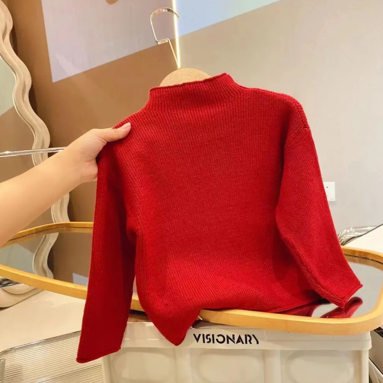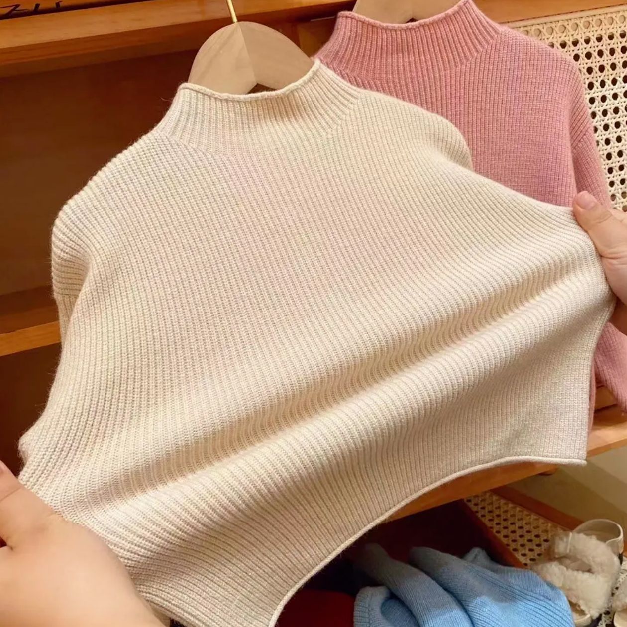| nameOriginal | Girls' 2024 autumn and winter clothing fleece-lined half turtleneck sweater baby solid color all-match loose sweater children's bottoming shirt |