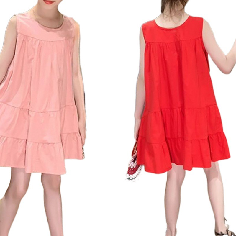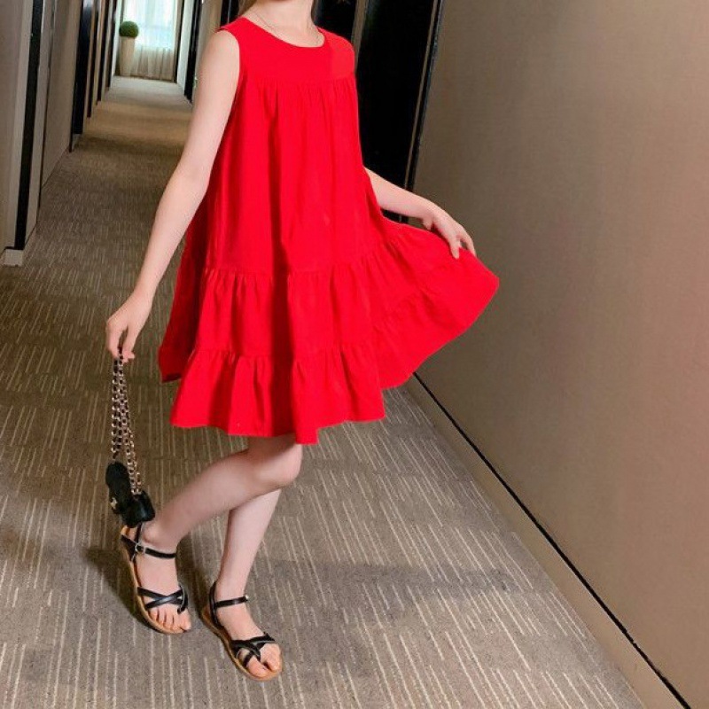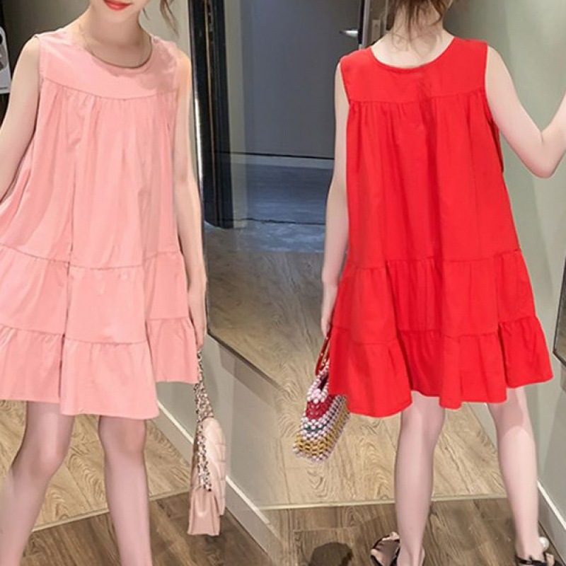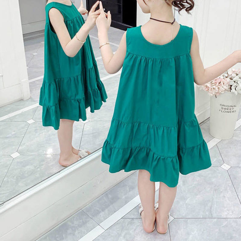 Girls 2024 New Summer dress Cake Skirt Vest Skirt Loose Western Style Korean Style Skirt Solid Color Midi Skirt