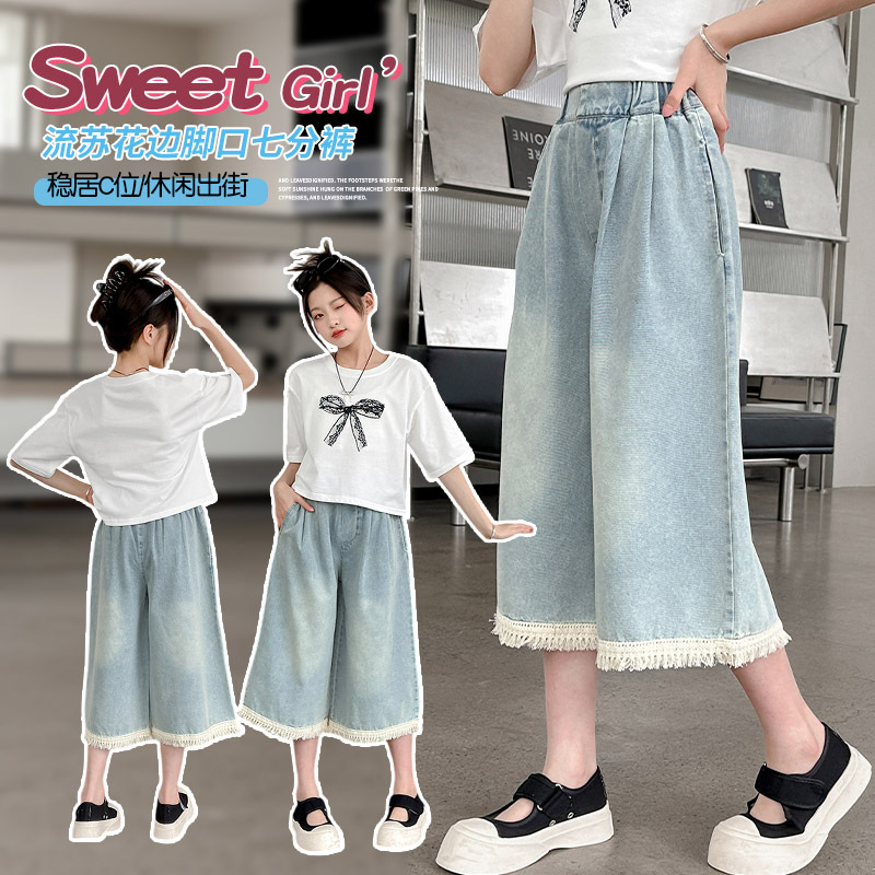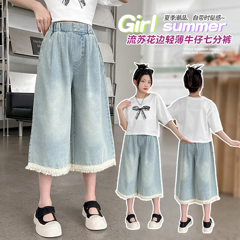 | nameOriginal | Girls' 2024 Summer Middle and Big Children's New Children's Korean-style Tassel Denim Cropped Pants All-match Trendy Cool New Arrival |