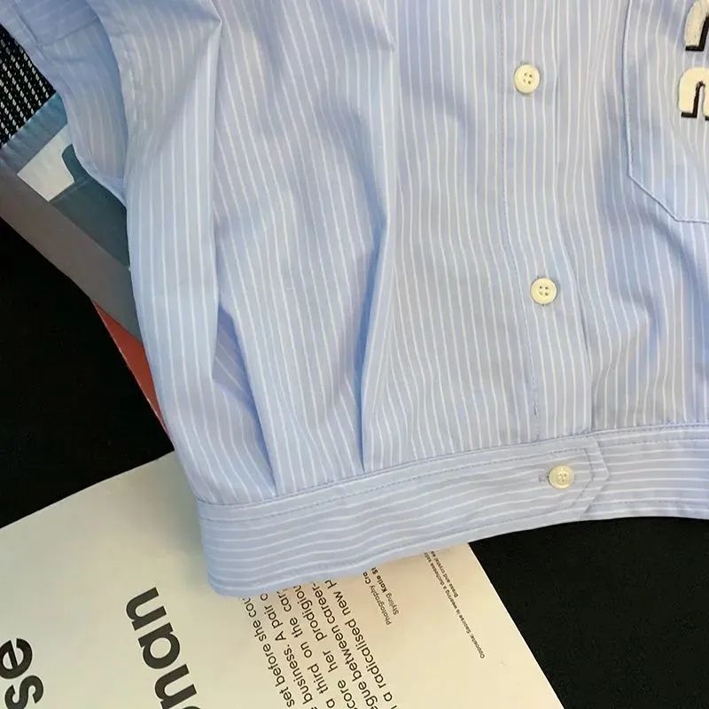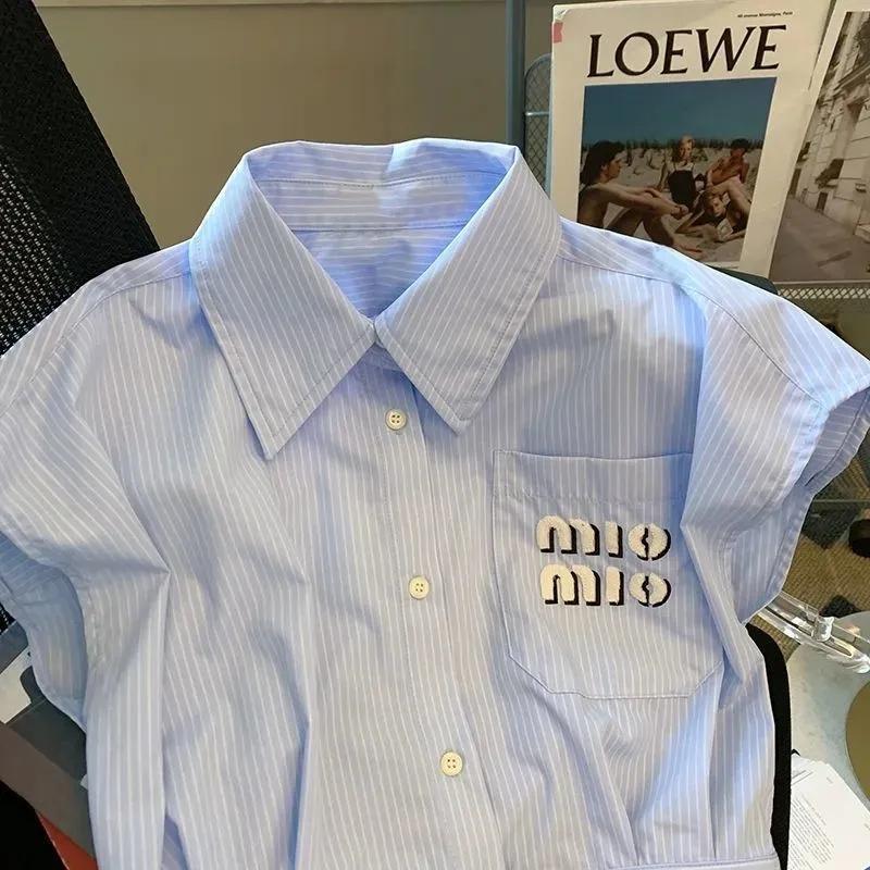 | nameOriginal | Girl's 2024 Summer New Niche Striped Collar Sleeveless Shirt Design Sense Shirt All-match Short Top |