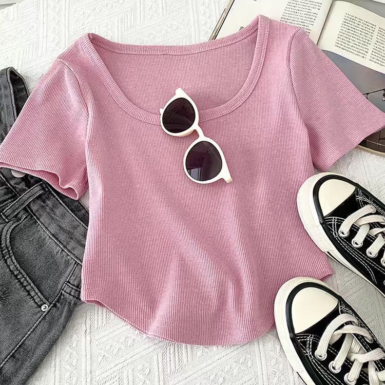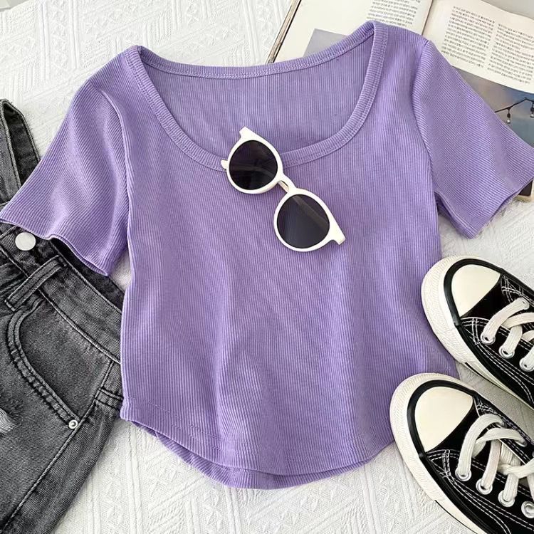 | nameOriginal | Girls' 23 Summer Round Neck Slim-fit Slimming Irregular Short-sleeved T-shirt Base Shirt Outer Wear Inner Top Trendy 0015 |