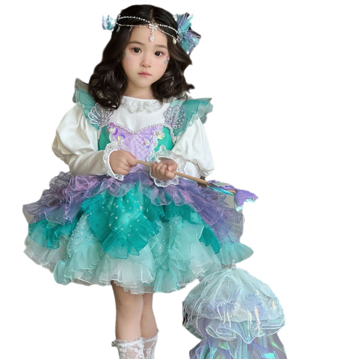 | nameOriginal | Girls' 24 new spring bottoming shirt puff sleeve inner wear baby Princess Western style white top lace top |