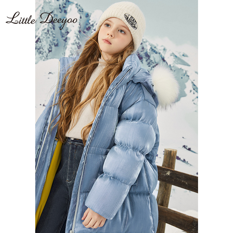 | nameOriginal | Girls' 90 velvet down jacket 2023 Winter new medium and large children's large fur collar hooded children's warm white duck down jacket |